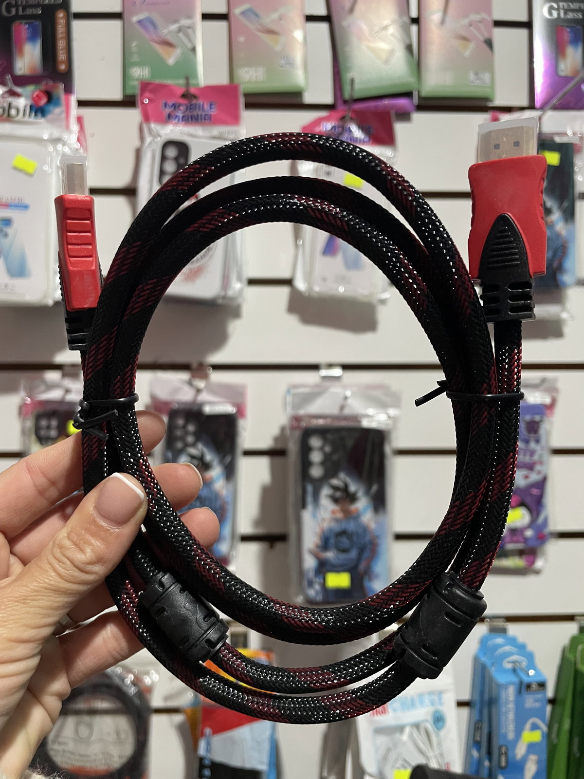 Cable hdmi 1,5 rojo y negro, revestimiento del conector engomado
